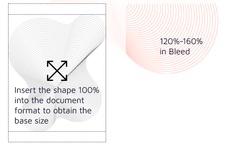 Always place in bleed and avoid white cutouts (corners/spaces).